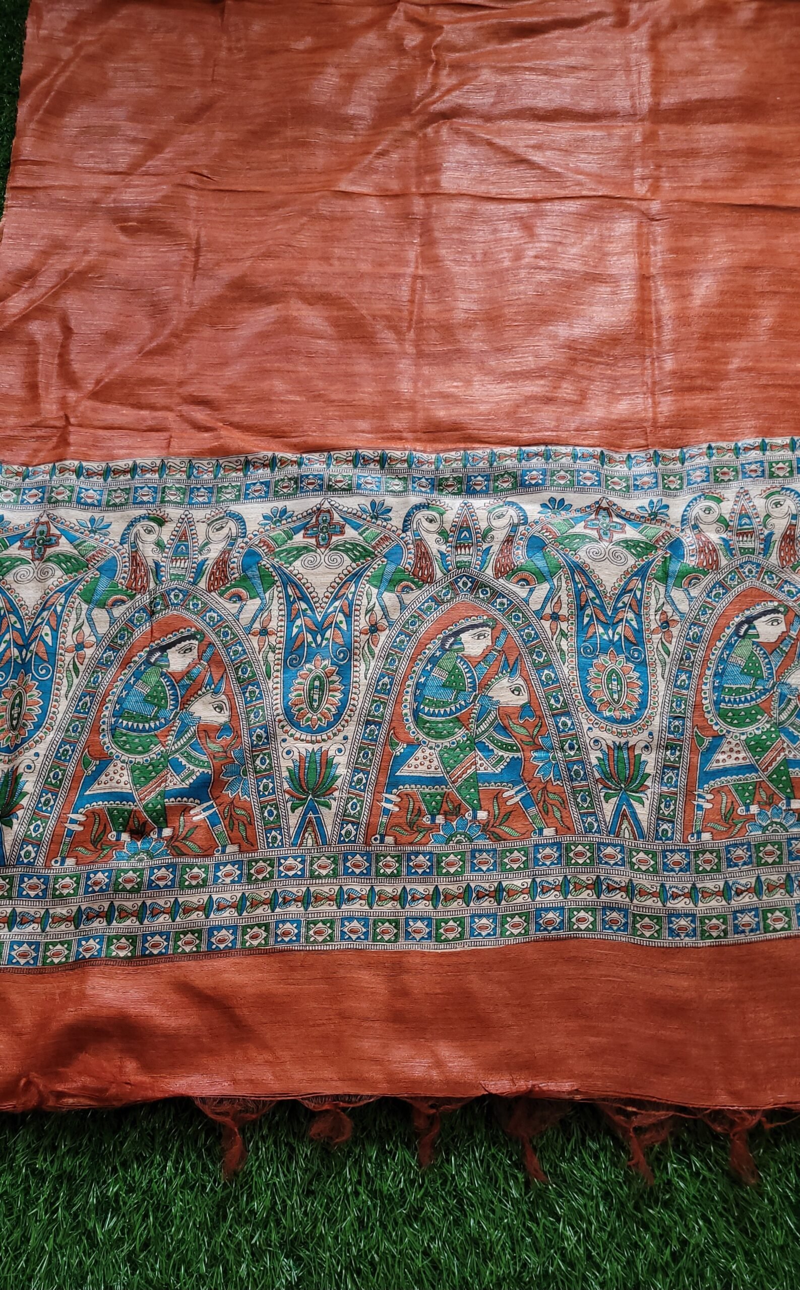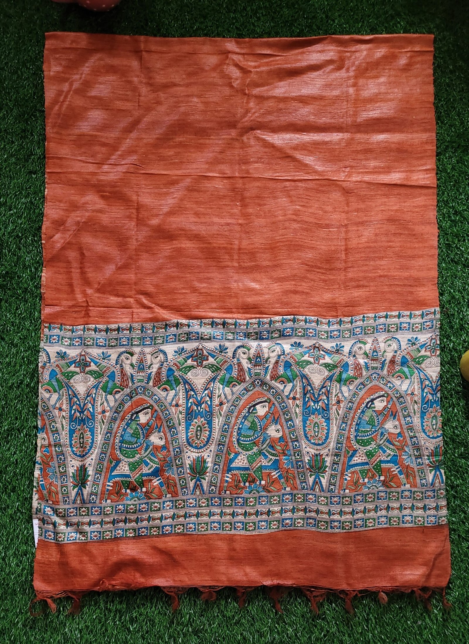 Be the first to review “orange colour digital printed Gheecha Tussar dupatta”