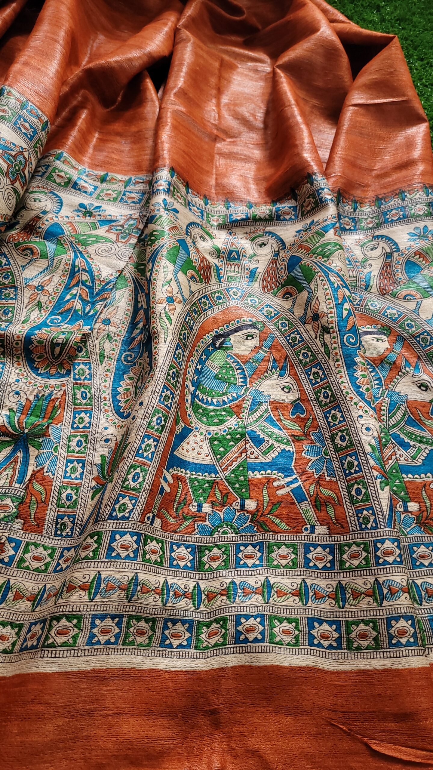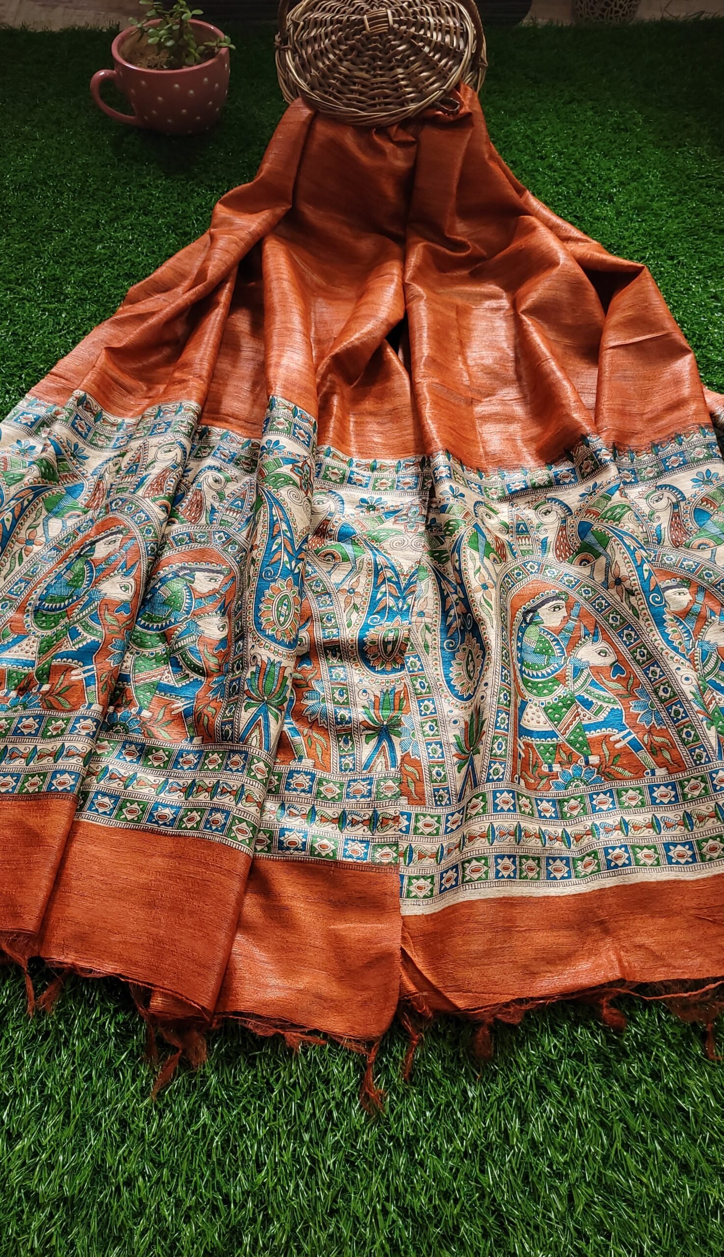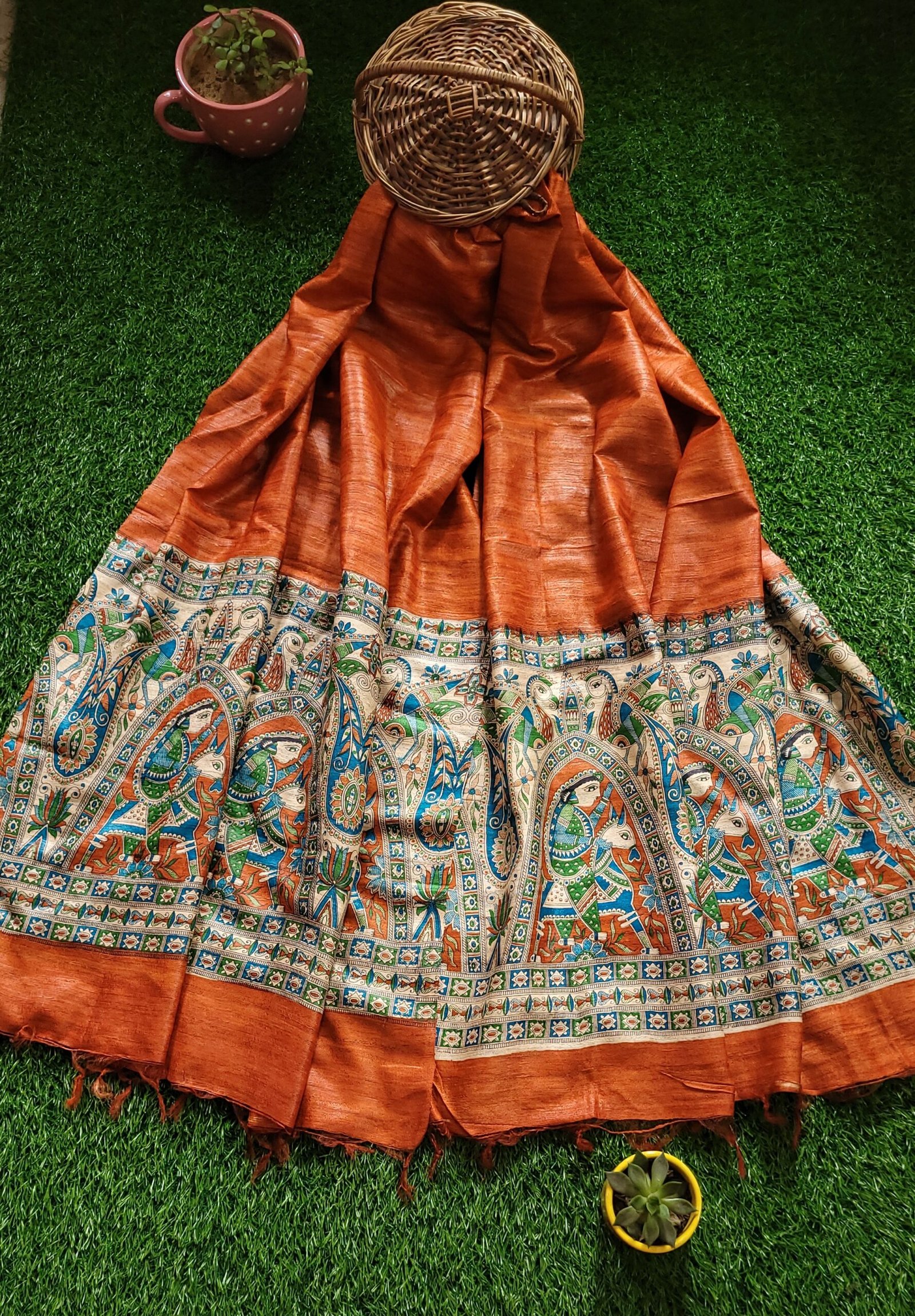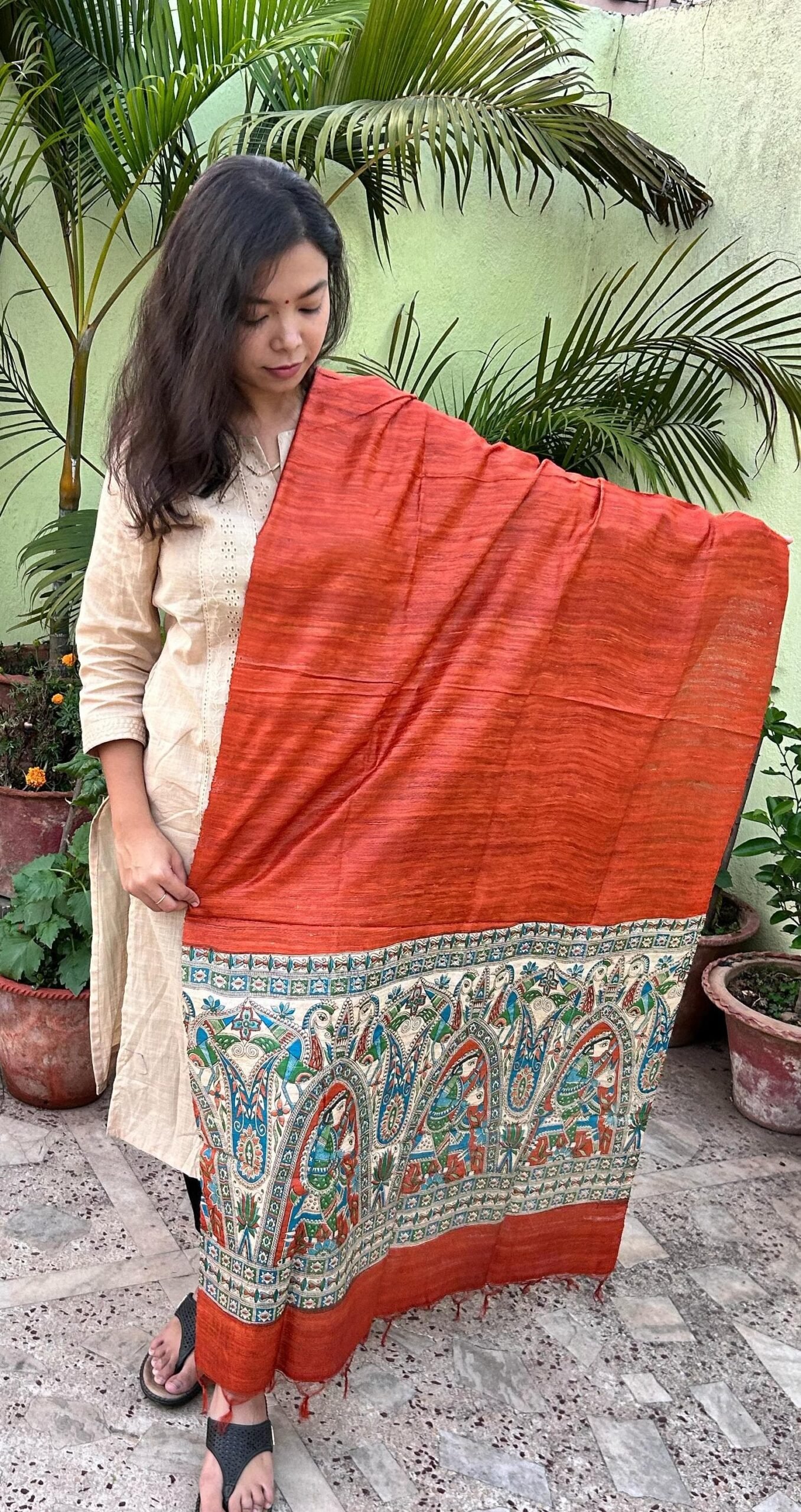 orange colour digital printed Gheecha Tussar dupatta