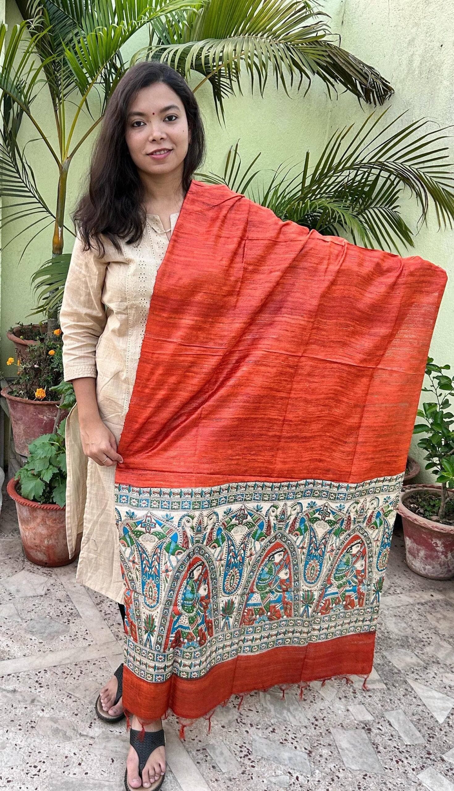 Please note that the actual product color may slightly vary due to lighting conditions, screen resolution differences, and the natural variations in hand-painted fabrics. We strive to provide accurate images, but minor variations are a characteristic of handcrafted products, making each piece unique.