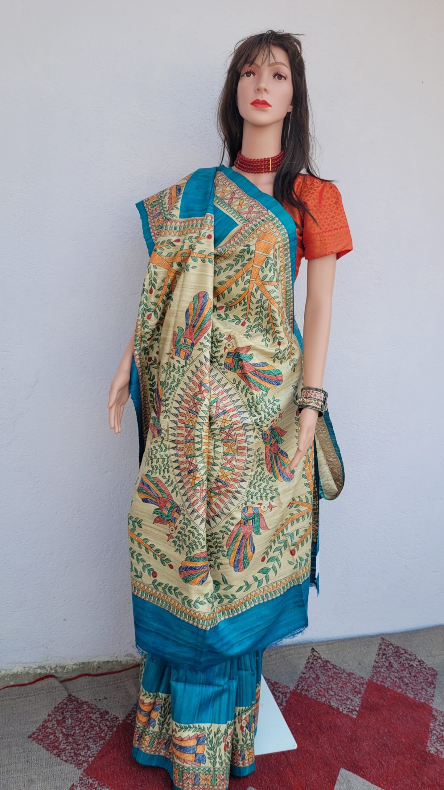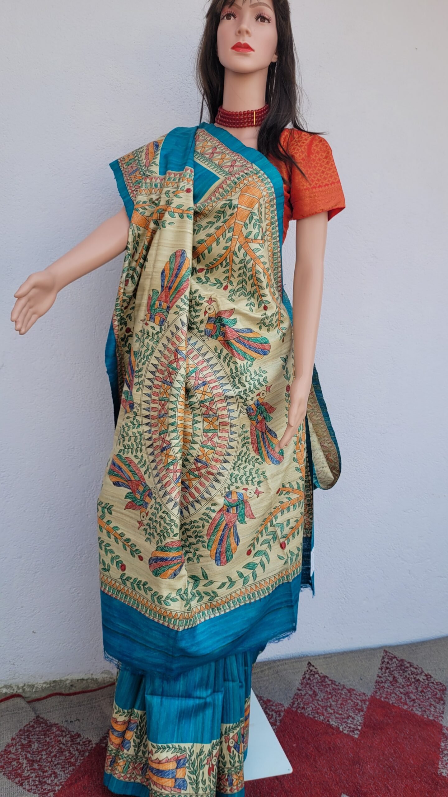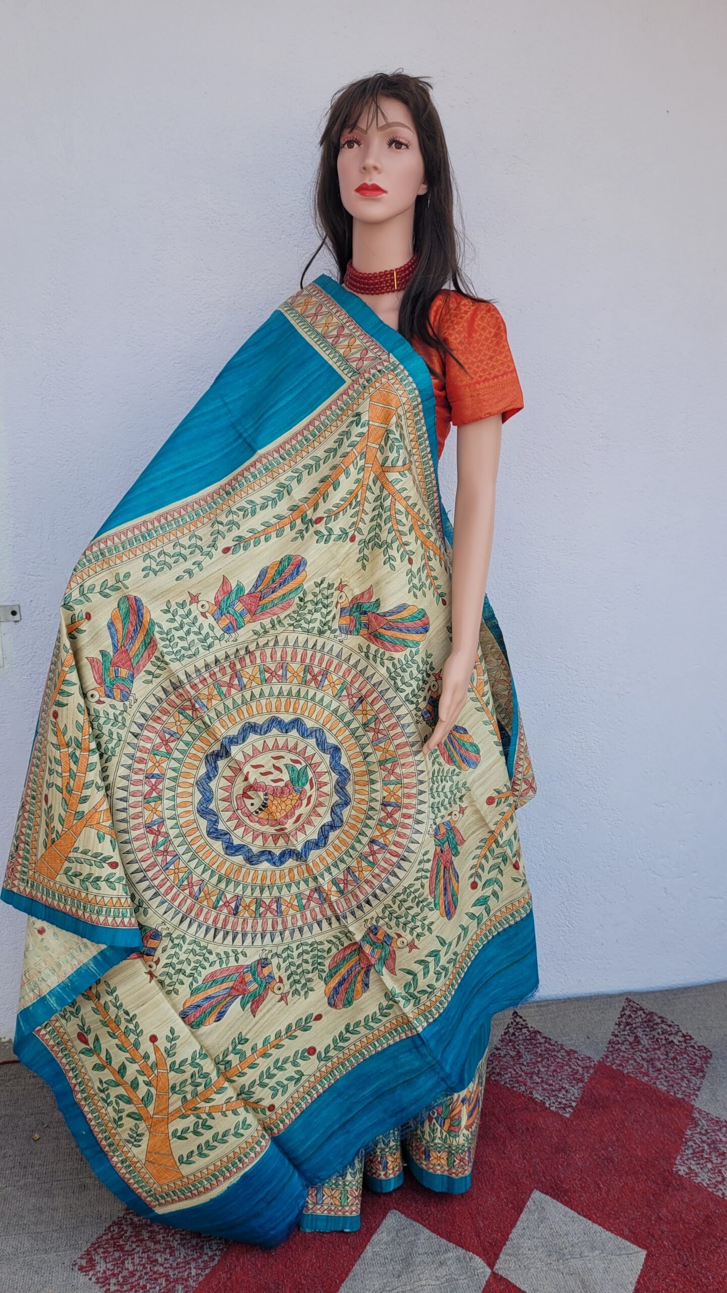Pure Tussar Gheecha Silk: Our sarees are made from the finest pure Gheecha silk, known for its natural sheen and luxurious texture.