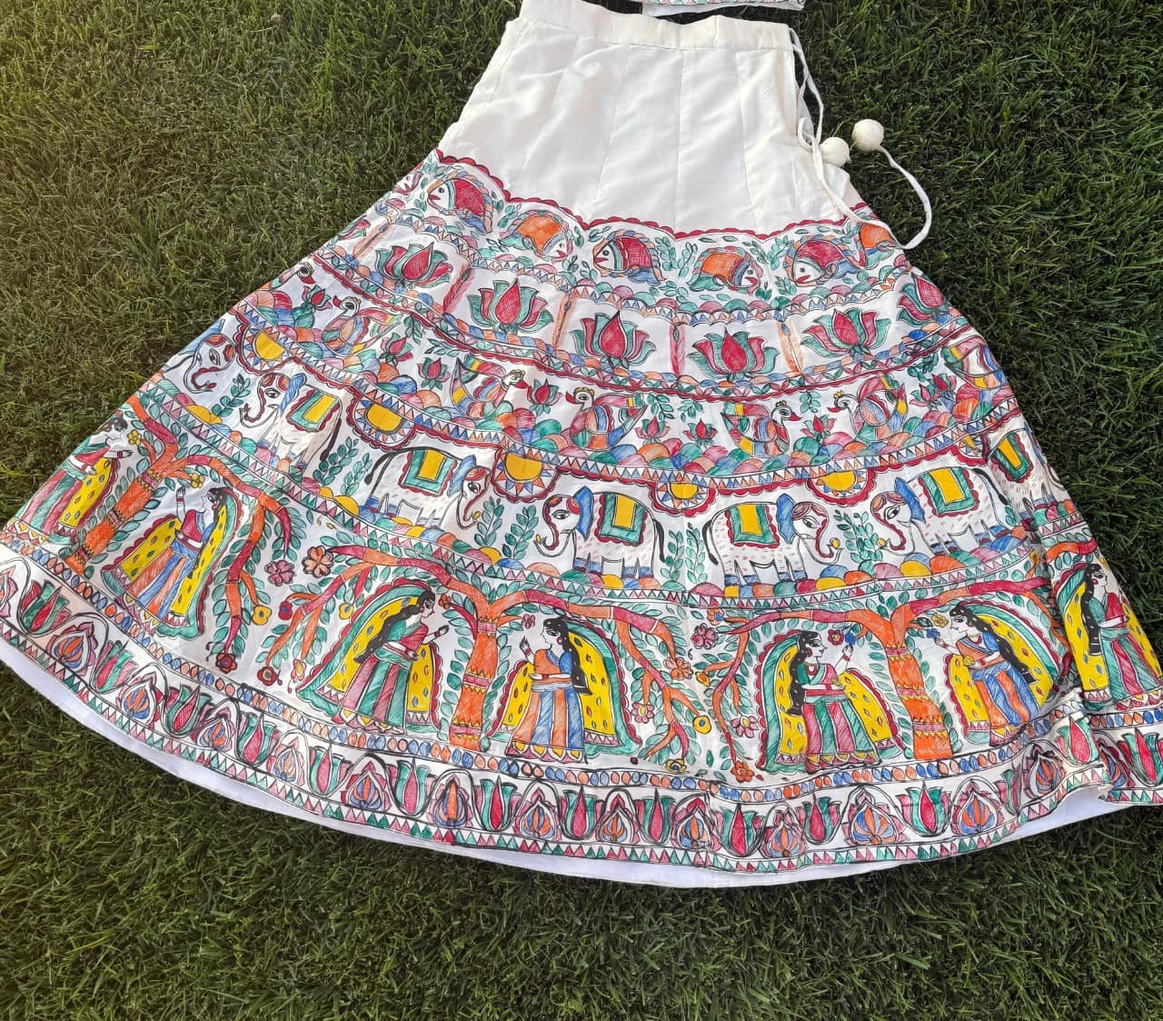 Madhubani Hand-painted Mulberry Silk Lehenga
